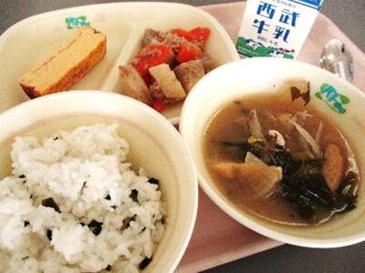 11月28日(金)の給食 投稿: 北野小学校 (18:22) カテゴリー: 今日の給食 K わかめごはん 厚焼き玉子 さといものそぼろ煮 たっぷり野菜のみそ汁 牛乳 里芋は、東南アジアの熱帯地域が原産地の野菜です。日本には、稲作が始まる前の縄文時代に伝わったといわれています。山で採れる「山芋(自然薯)」に対して、里で採れることが里芋という名前の由来です。江戸時代頃は「芋」といえば、里芋のことでした。1つの親芋を囲むように子芋や孫芋が育つので、豊作や子孫繁栄を象徴する縁起物とされています。(IWAKI) -