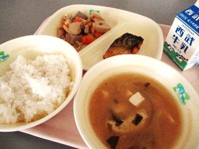 ごはん サバの文化干し 筑前煮 大根のみそ汁(オーガニックの大根を使っています) 牛乳