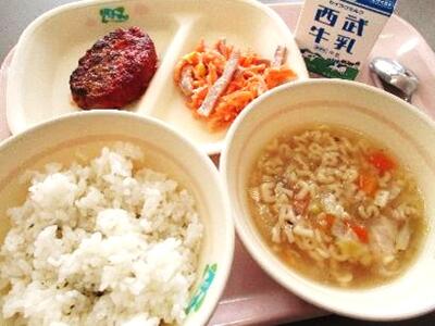 1月29日(木)の給食 投稿: 北野小学校 (18:45) カテゴリー: 今日の給食 K ガーリックライス ハンバーグのケチャップソース とことこキャロットサラダ(有機の人参を 使用) ABCスープ 牛乳 ガーリックライスは、食欲がないときでもしっかり食べられる、にんにくを使った料理の1つです。にんにくの香りや成分には、食欲を増進する効果があり、醤油や米の香りがその効果を一層高めてくれます。また、にんにくは高い疲労回復効果も期待できる食材です。季節の変わり目などで、食欲が減りがちな時期には、特にオススメです。(にんにくの豆知識) -