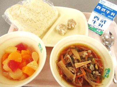 しょうゆラーメン(中華めん) ポーク焼売 フルーツポンチ 牛乳