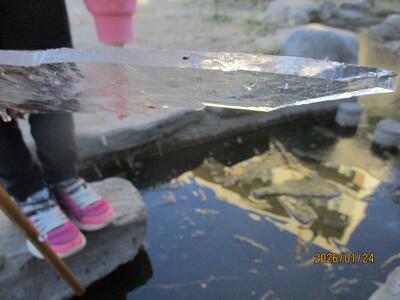 学校では、今日も学校の池の氷に興味をもった北野っ子が私に話しかけてきました。北野小のよい子の約束では「校庭以外(体育小屋の裏、コンクリートの部分、池など)では遊ばない。」となっています。池の観察は、危ないので先生と一緒にする約束です。今回、北野っ子の興味関心が強く、私と一緒に三日間も池の厚さを調査しました。22日は3mmだった氷が23日には2倍、24日はさらに1mm増えていました。⑤番目の写真:学校公開がされた2・3校時では、駐輪場をラインカーで書き足すほど多くの保護者が来校されました。心よりお礼申し上げます。⑥番目の写真:5年生では、学校保健委員会の取り組みとして講師をお招きして講演「みつめようココロとカラダ」を実施しました。来年度も実施してほしいとの感想もいただいています。また、来年度の行事予定についての問い合わせがありました。大事なことと思います。暑さ対策として行事配置の見直しが関係各所に打診し見直しをしていました。2月の職員会議後に計画案をお示しできると考えています。よろしくお願いいたします。
